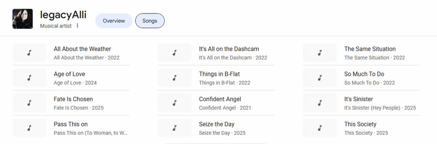 Legacy Alli / LegacyAlli / legacyAlli Composer Alli / composerAlli LegacyAlli.com Free Music Archive (legacyAlli) YouTube - legacyAlli YouTube - legacyAlli - topic (Songs on all Music Platforms) YouTube -Mindset Melodies #legacyAlli